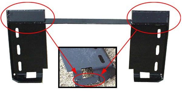 This heavy duty mounting plate has reinforcements on top bar and latch pin holes (Ex: Heavy digging, prying concrete, rocks or tree stumps). This innovative design will allow all attachments with this mounting plate to be utilized on either a universal mount Caterpillar skidloader and/or the Caterpillar 902, 906 & 908 model articulated loaders. Comes fully welded, unpainted and weighs 59 pounds.