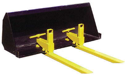 These clamp on pallet forks easily clamp onto all style tractor, wheel loader, and skid steer buckets.