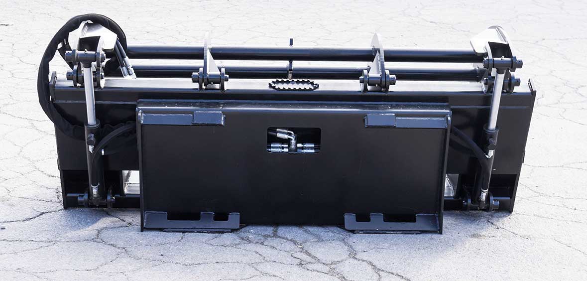 All of our skid loader attachments are made in the USA and come with industry best warranties. All are fully welded and powder painted to keep the moisture out. We make aftermarket skid loader attachments to fit any model skid steer such as Bobcat, Gehl, Caterpillar, New Holland, John Deere, and more. If your machine is not universal we also have other machine specific mounting plates to fit our attachments to your non-universal machine. Call our attachment experts with any questions.
