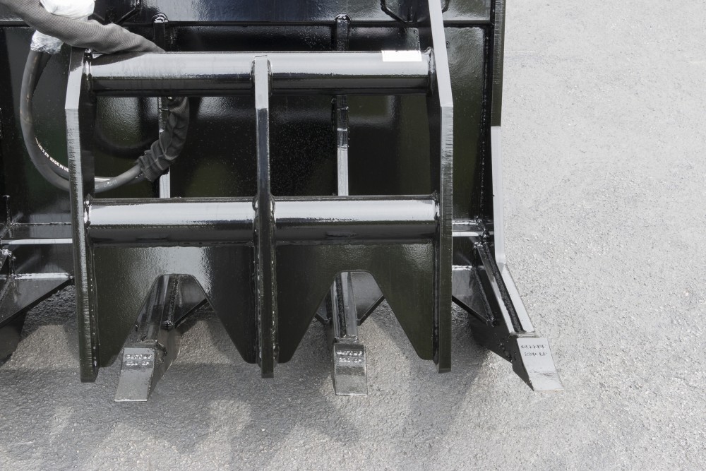 The Severe Duty Grapple Rake is available in 72", 78", and 84" widths. It is built for the most severe, demanding applications such as demolition or logging. It comes with 3/4" tines and replaceable teeth spaced 12" apart. Grapple opens to 54".