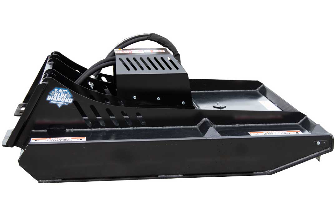 Available in either 60 inch or 72 inches, this direct drive brush cutter is more dependable than a gear box driven cutter. It offers quiet, smooth operation. This machine will easily mow grass and cut material up to 4 inches. With a 3 double edge blade system and a bidirectional motor, this brush cutter can be run in either direction. This benefit gives a longer life to your blades and also gives you the option to cut grass in one direction and heavy brush in the other direction.