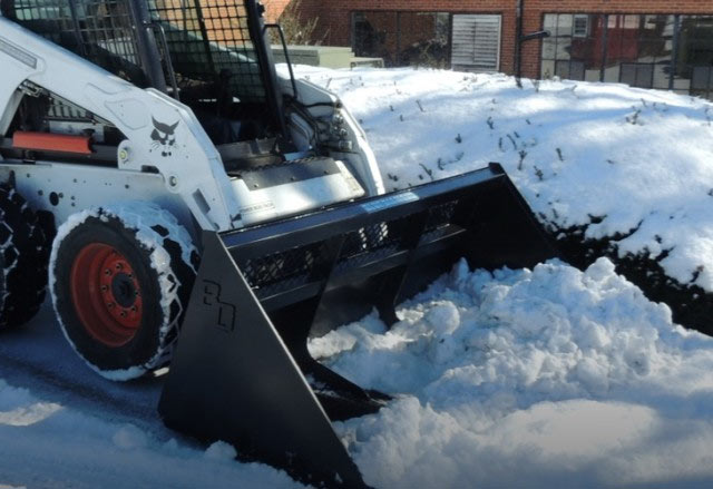 In the winter time, many landscaping companies turn into snow removal companies. Again they use their skid loader as one of the main machines for the job. They use attachments such as a Blue Diamond snow blade or Blue Diamond Snow Pusher to get the job done right. On a side note, we now offer specialty made snow tires that give your machine more speed and tread to move snow quickly.