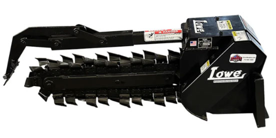 Introducing the Lowe XR7-Series Trencher Attachment, specifically designed for mini skid steers like Toro Dingo, Vermeer, Bobcat MT, Boxer, and Ditch Witch. This trencher attachment delivers exceptional power and efficiency, ideal for demanding trenching jobs. Built with durability in mind, it boasts a robust 50,000 lb. (22,680 kg) digging chain and a removable double-flighted spoil auger for faster, cleaner operation. Its advanced design includes a self-aligning boom with grease cylinder tensioning, maintenance-free tapered roller bearings, a long-lasting boom roller, and enhanced high-pressure functionality. For added versatility, use the center trench position or the manual side-shift – with an optional hydraulic side-shift – for precise trenching near buildings or obstacles. Equip your mini skid steer with the Lowe XR-Series for reliable, high-performance trenching every time.