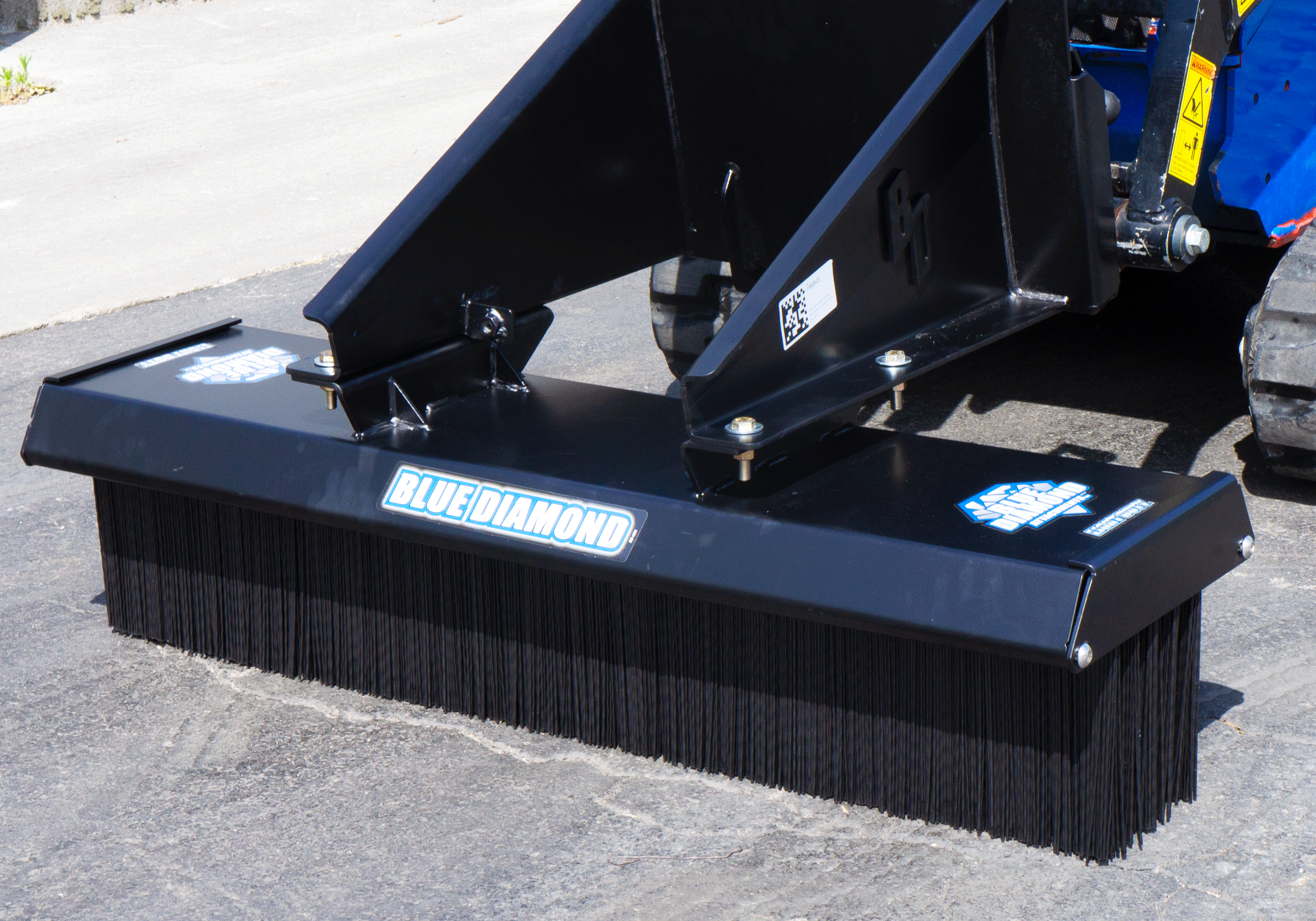 Introducing the Blue Diamond® Light Duty Push Broom, an affordable choice for effective sweeping tasks. With widths of 36”, 48”, and 60”, this push broom is perfectly tailored for mini skid steers and fork lifts. Featuring five rows of bristles, it effortlessly clears away dust and debris.