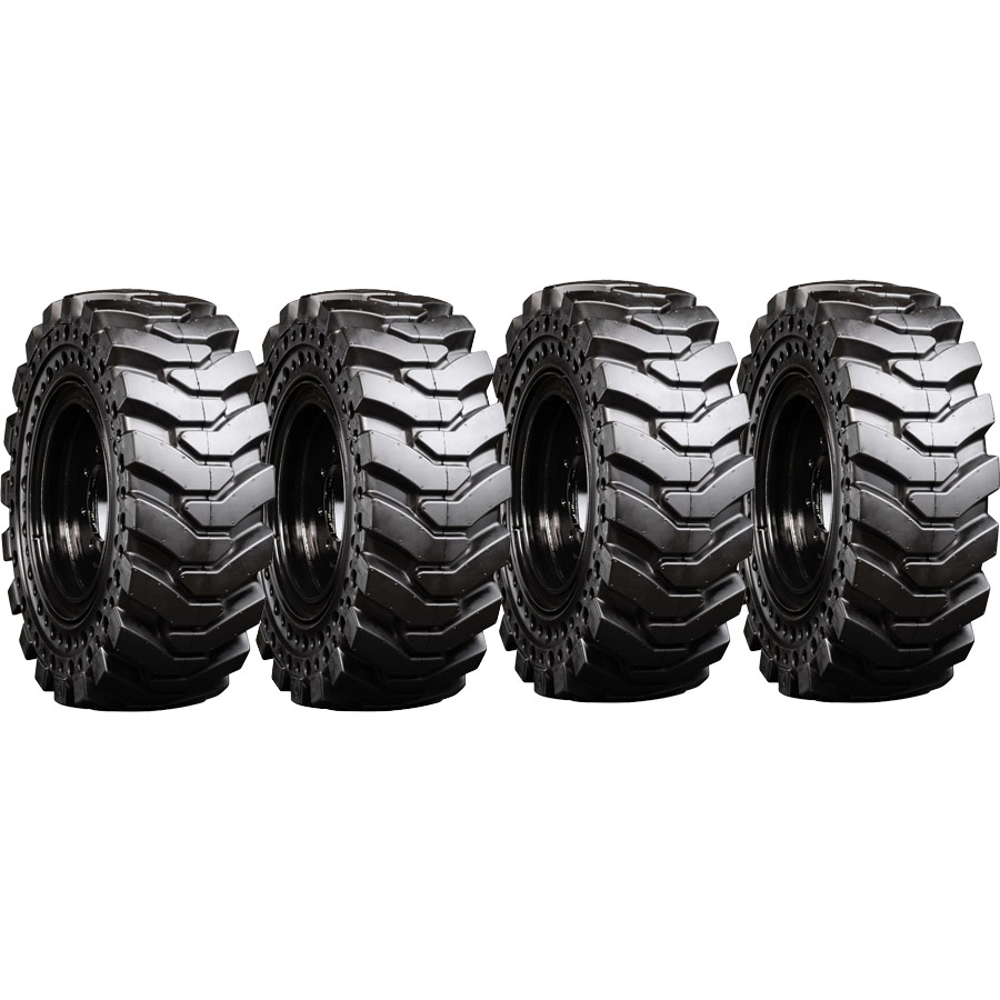 No flats. No Downtime. No Problems. By reducing tire replacement costs and downtime, you will reduce your overall cost-per-hour. These Traxter tires provide up to three-times the tread depth of regular pneumatic and foam-filled tires. Combined with our proprietary abrasion resistant rubber compound, these solid skid steer tires can last up to five times longer than pneumatic and foam-filled tires. These tires are engineered for heavy loads while still providing a much smoother, cushioned ride than pneumatic or foam filled tires. Come standard with wheel and tire assembly included.