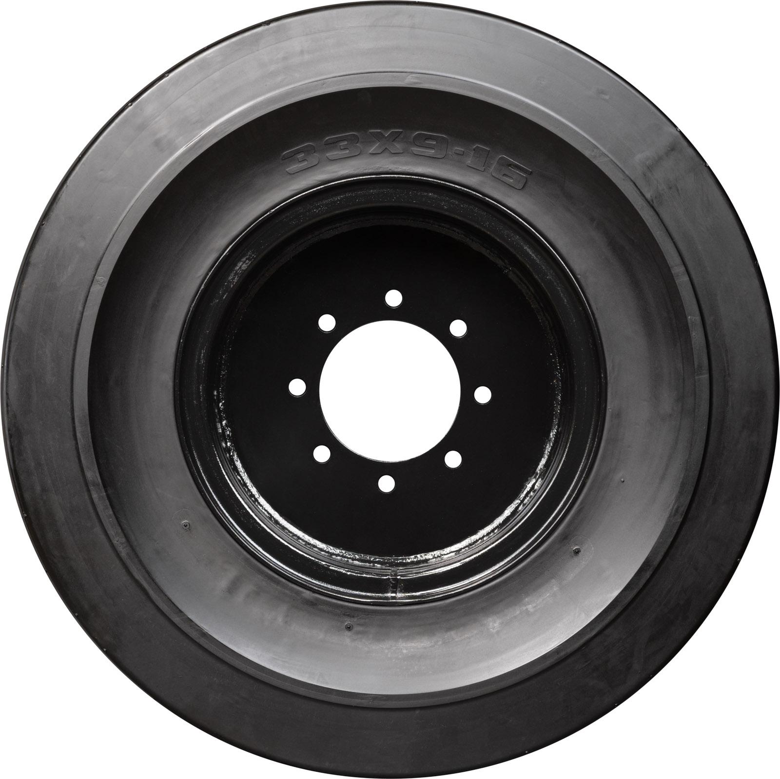 Set of 4 33X9-16 (12-16.5) Extreme Duty Traxter Smooth Solid Rubber Skid Steer Tires - 8x8 Bolt Rim