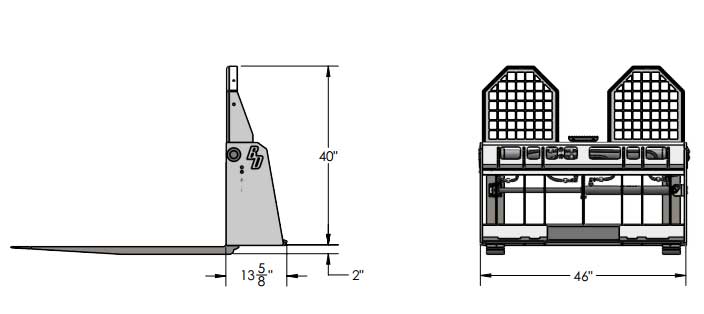 - Forks adjust from 8" to 40" on center