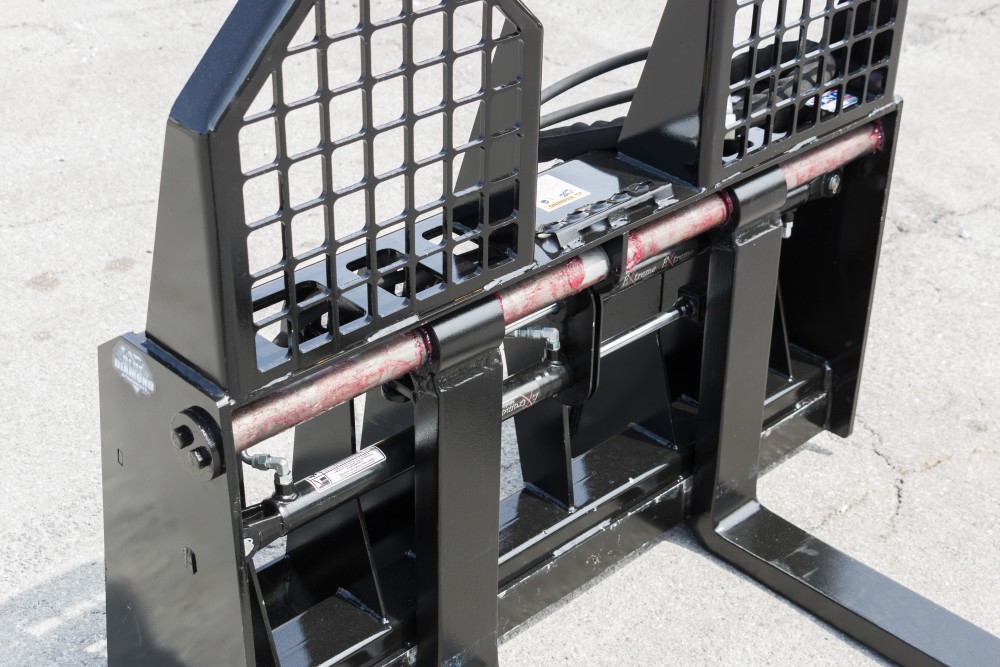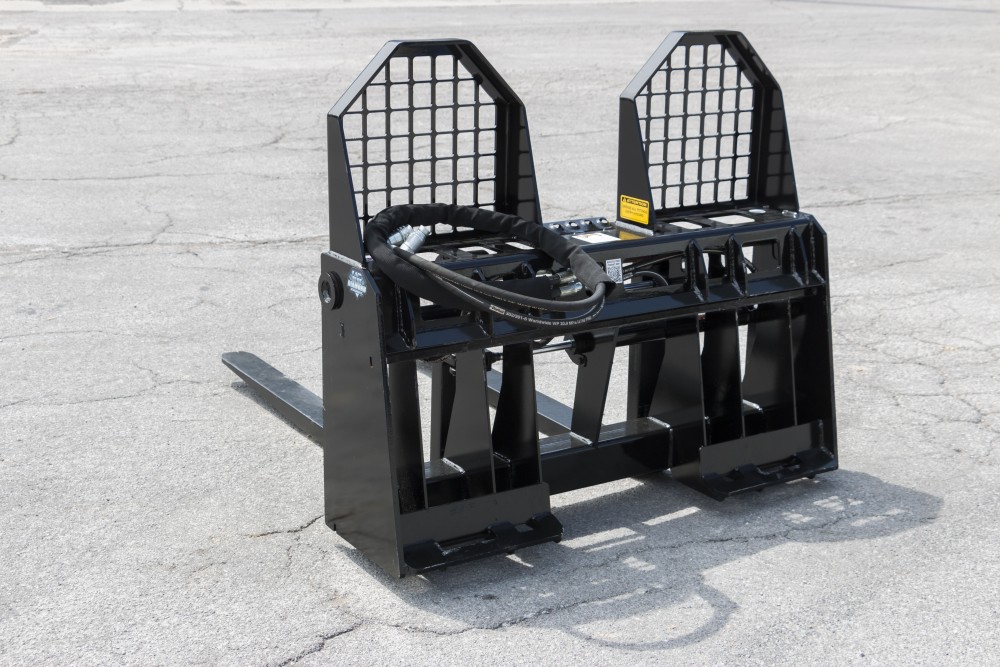 Save time and money by not having to leave your cab to adjust your forks with each load! The hydraulically adjusting forks are engineered with severe duty applications in mind. Rated for 6000 lbs., this attachment is best paired with large frame skid steers and compact wheel loaders.