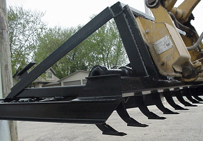 Landscaping professionals rely on their skid steer to be the jack of all trades. In most cases, they are working in small areas such as residential yards or at small business locations. They use attachments such as low profile buckets for hauling or back dragging dirt, root grapples for clearing debris, or a skid steer Blue Diamond Land Leveler Attachment for agitating and smoothing out dirt before seeding a lawn.