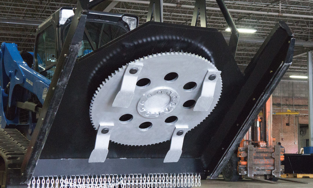 The incredible power and versatility of the Blue Diamond® Severe Duty Series 2 brush cutter will all but remove the need for a mulching head. Its 10” cutting capacity and incredible performance in grass make this brutally tough unit the top in its class. Using the highest quality piston motor on the market, the torque throughout its flow range is unmatched. The visible pressure gauge keeps you aware of the workload and will allow you to work at peak performance, increasing productivity tremendously! Adjustable skid shoes allow the cutting height to be adjusted. The mammoth 1” thick blade carrier weighs over 500 lbs and has a serrated edge to help with mulching and destroying fence wire that so often takes out brush cutters. The innovative debris covers prevent brush and other materials from building up on the top of the deck. Keeping this surface clear of debris ensures maximum life of the durable powder coat as well as adding safety for entering and exiting the machine.