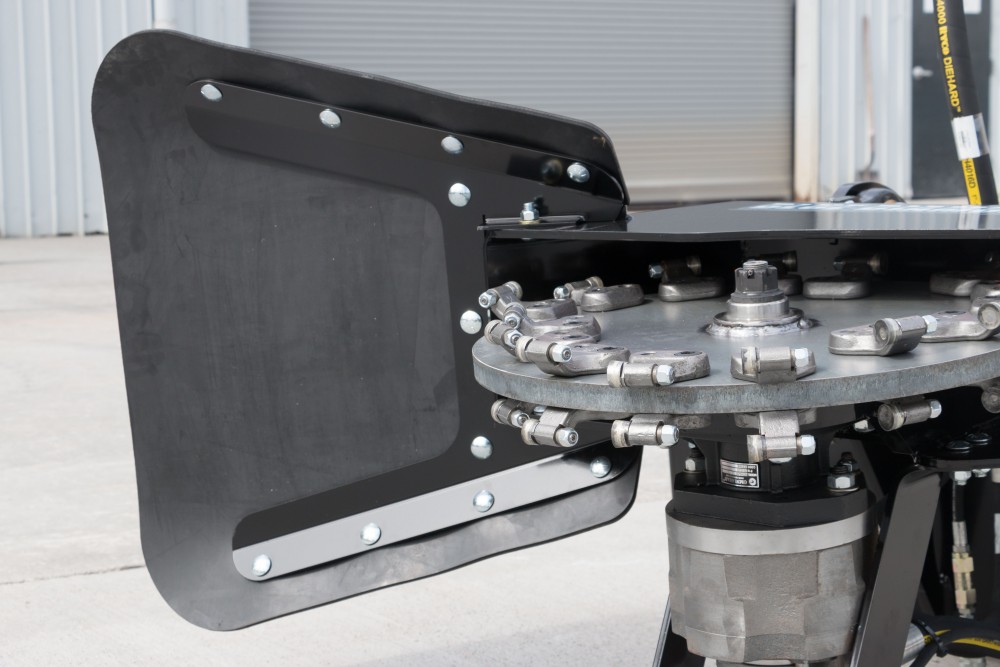 - Very large, high torque radial piston motor with a 97% efficiency rating and keeps its torque right through its rpm range. (most other stump grinder skid steer attachments on the market only have a 79% efficiency)