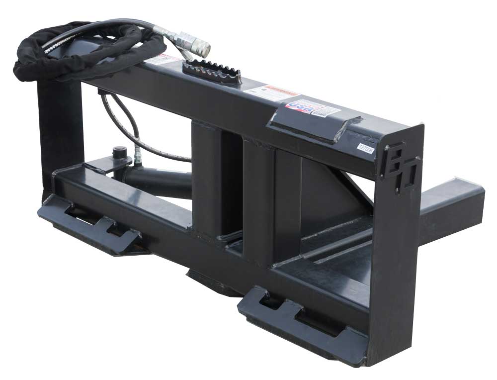 All of our skid loader attachments are made in the USA and come with industry best warranties. All are fully welded and powder painted to keep the moisture out. We make aftermarket skid loader attachments to fit any model skid steer such as Bobcat, Gehl, Caterpillar, New Holland, John Deere, and more. If your machine is not universal we also have other machine specific mounting plates to fit our attachments to your non-universal machine. Call our attachment experts with any questions.