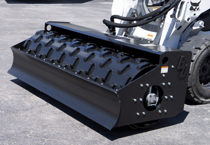 The Vibratory Roller is available in 4 different models. These models either come in 72-inch or 84-inch widths and are available in smooth or pad foot drum options. All models come standard with a universal quick-tach mount. These rollers are very low maintenance machines. This roller has a hydraulically powered exciter systems that are lubricated by an oil mist design. This roller comes standard with a knockdown blade. This unit has a lower operating temperature and has the industry's lowest rate of bearing and seal failures.