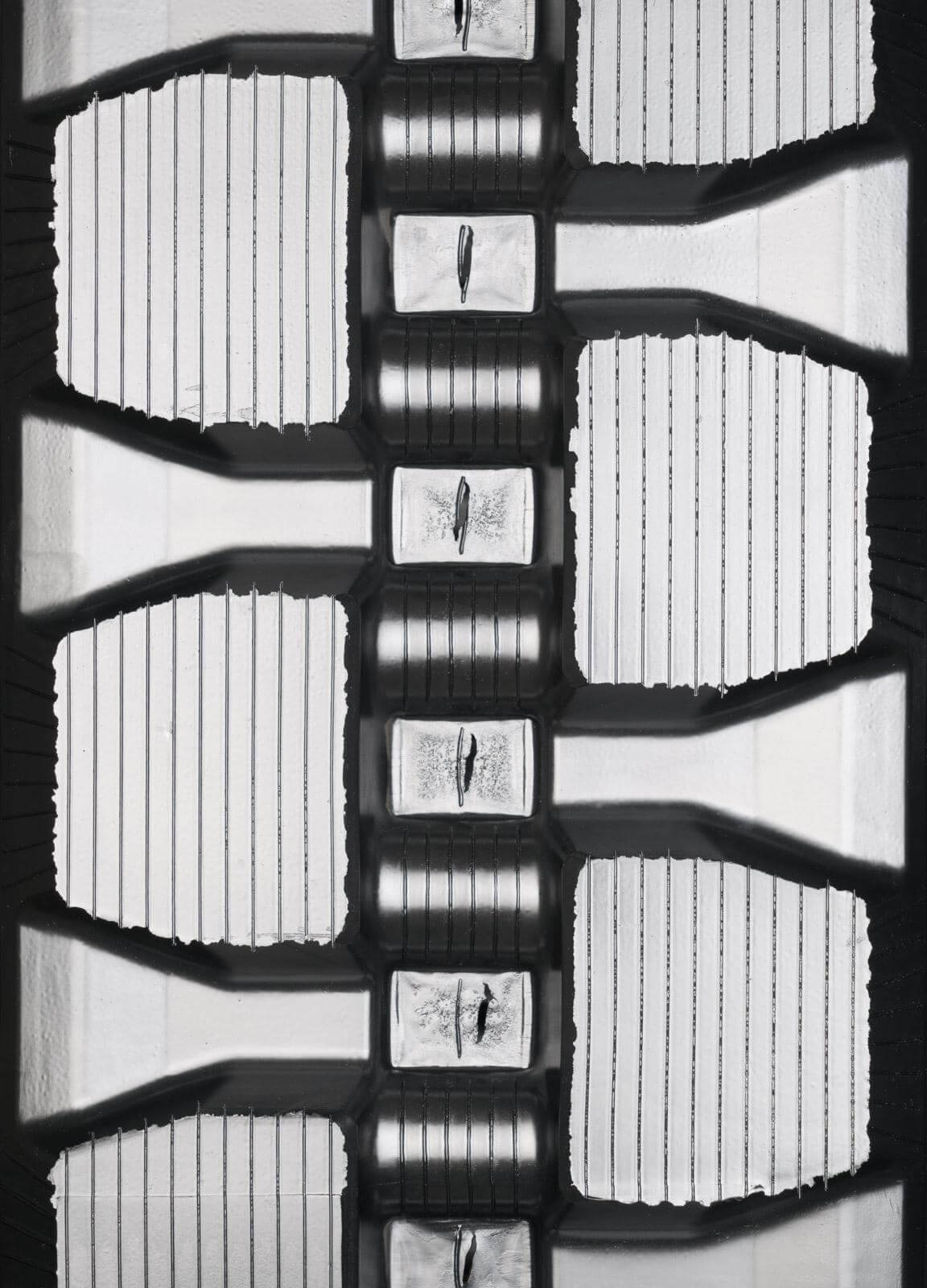 The Block Tread is the most commonly used tread design for OEM rubber tracks.