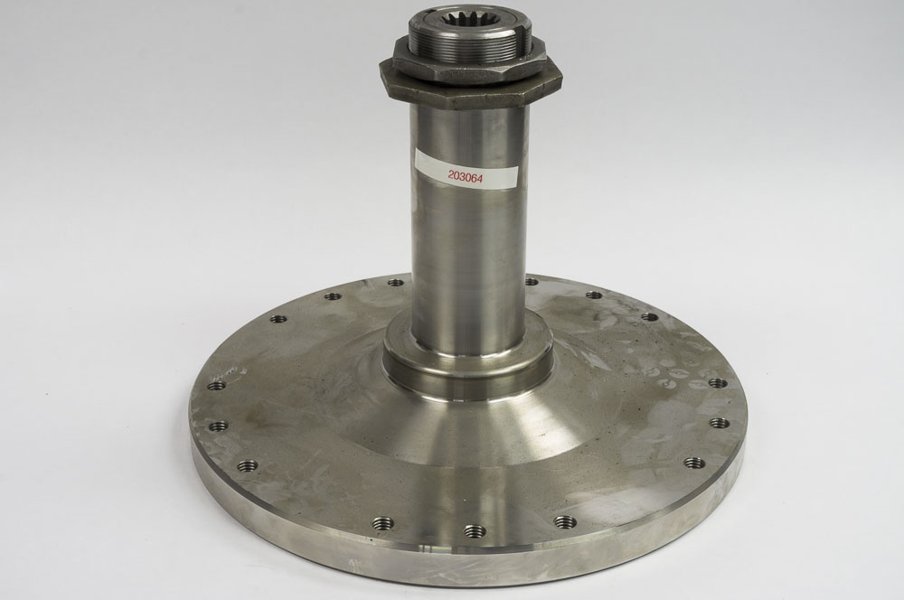 Blue Diamond Attachments new style 15 hole straight shaft direct drive spindle for Brush Cutters. This style replaces 10 hole 203065. This will fit all straight spindle Blue Diamond Brush Cutters. This will not fit the older ring style lower wire guard models and will need to be replaced with part number 203914 bushing style. When reassembling, most of these brush cutters were filled with oil and we recommend filling them with grease. Instructions for this are available. This direct drive spindle has 1/2" blade carrier bolts to fit old style blade carrier.