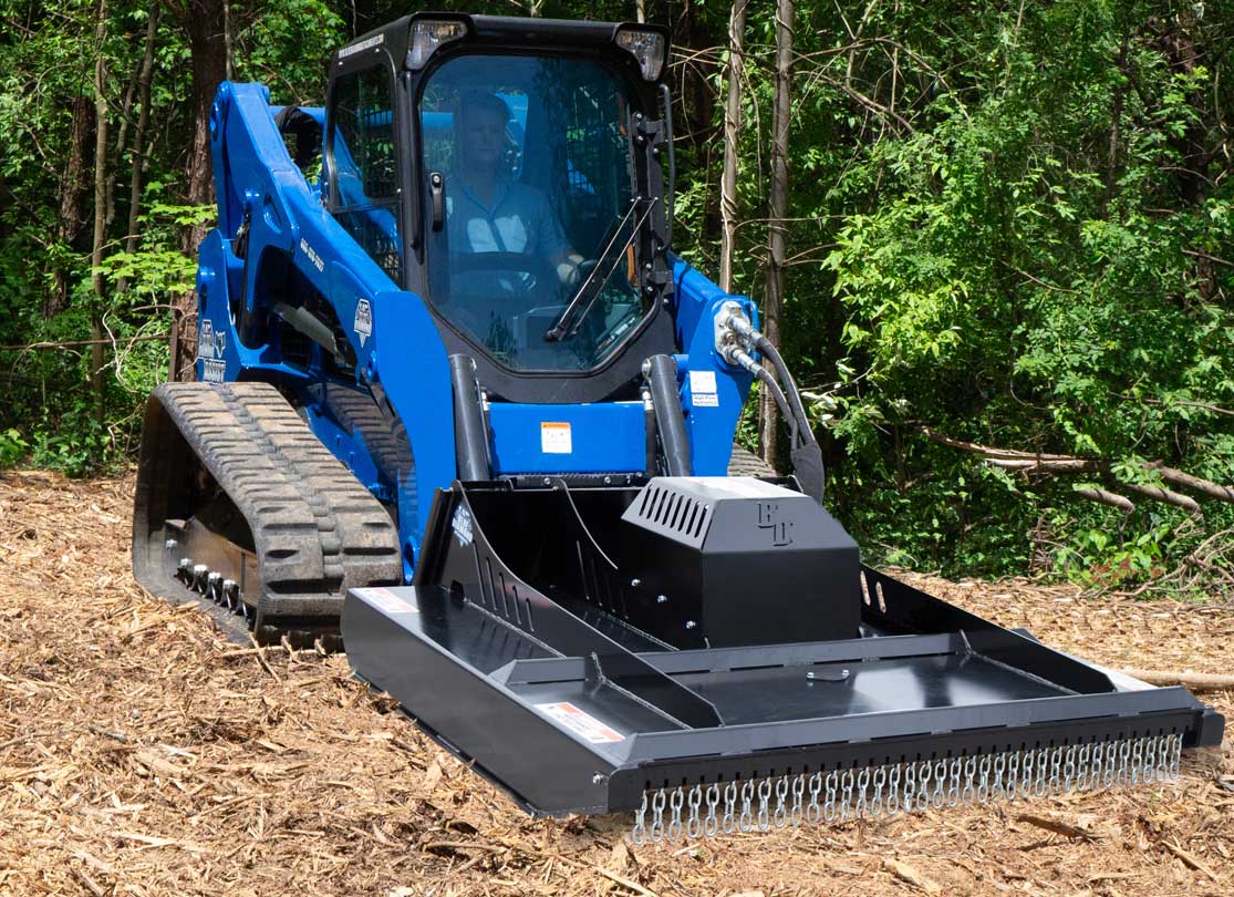 Landscaping professionals rely on their skid steer to be the jack of all trades. In most cases, they are working in small areas such as residential yards or at small business locations. They use attachments such as low profile buckets for hauling or back dragging dirt, root grapples for clearing debris, or a skid steer Blue Diamond Land Leveler Attachment for agitating and smoothing out dirt before seeding a lawn.