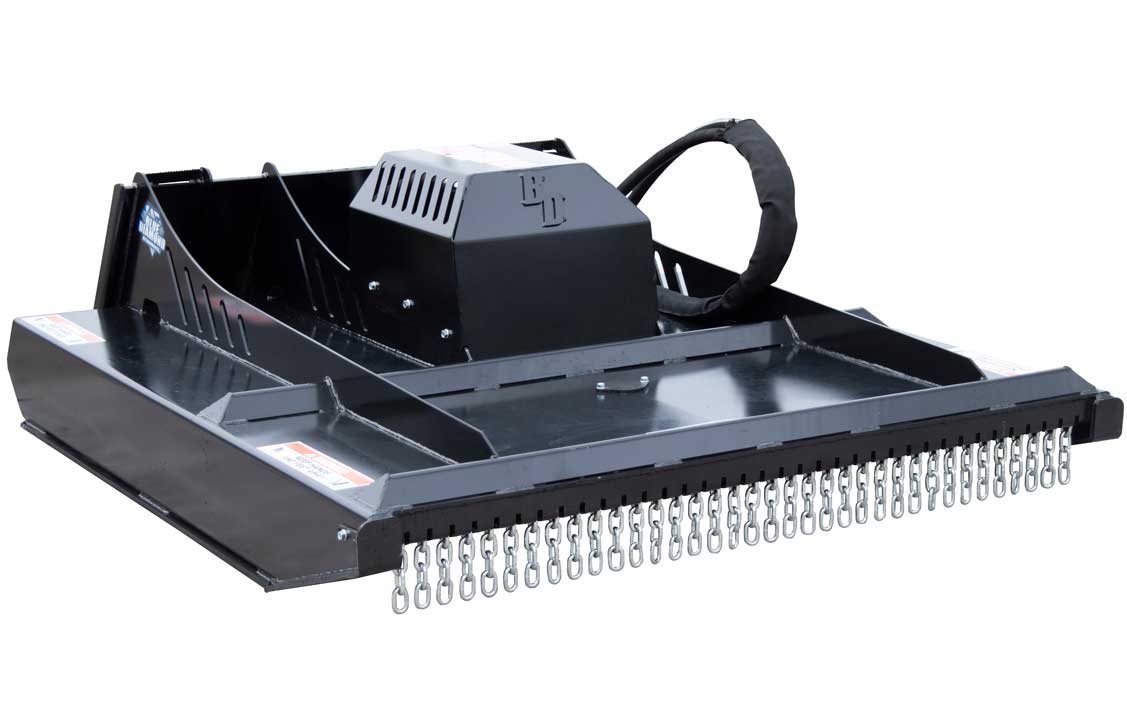 Available in either 60 inch or 72 inches, this direct drive brush cutter is more dependable than a gear box driven cutter. It offers quiet, smooth operation. This machine will easily mow grass and cut material up to 4 inches. With a 3 double edge blade system and a bidirectional motor, this brush cutter can be run in either direction. This benefit gives a longer life to your blades and also gives you the option to cut grass in one direction and heavy brush in the other direction.