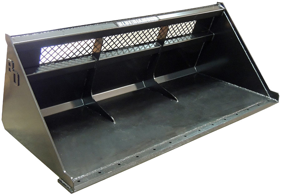 This Blue Diamond High Capacity Snow and Mulch Bucket features a 32" high back with mesh strip for high visibility. This bucket is highly reinforced with bottom ribs inside connecting the floor and back of the bucket. This allow the operator to work at higher speeds without having to worry about the floor giving out. Application include chicken litter, snow removal, wood shavings, and gravel.