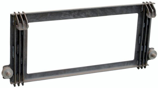 John Deere compact tractor mounting plate measures 46 7/8 inches center to center of pins, and 15 1/16 inches from the pin up to the bar rest. It must be finish welded after being mounted. It comes unpainted and weighs 49 pounds.