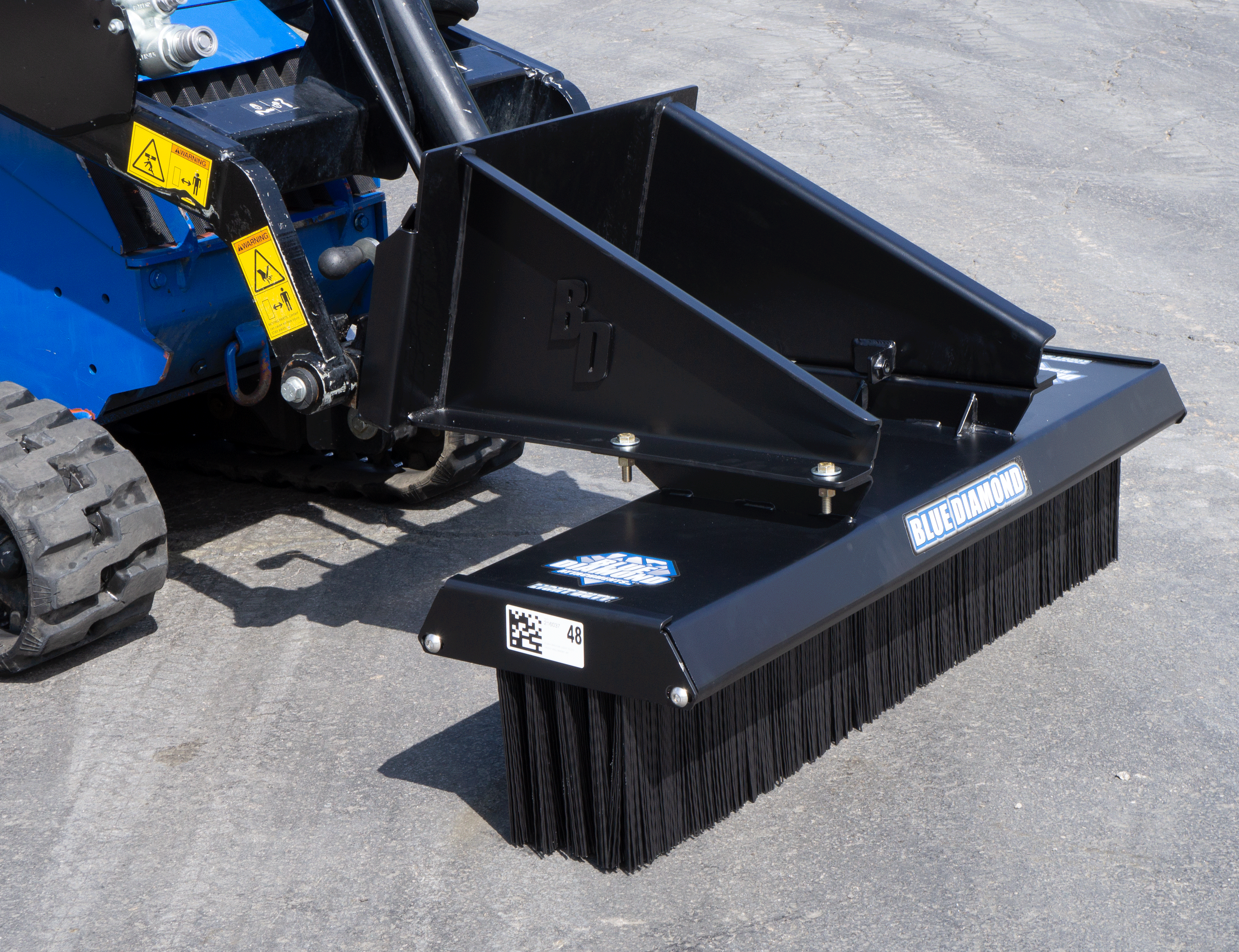 Introducing the Blue Diamond® Light Duty Push Broom, an affordable choice for effective sweeping tasks. With widths of 36”, 48”, and 60”, this push broom is perfectly tailored for mini skid steers and fork lifts. Featuring five rows of bristles, it effortlessly clears away dust and debris.