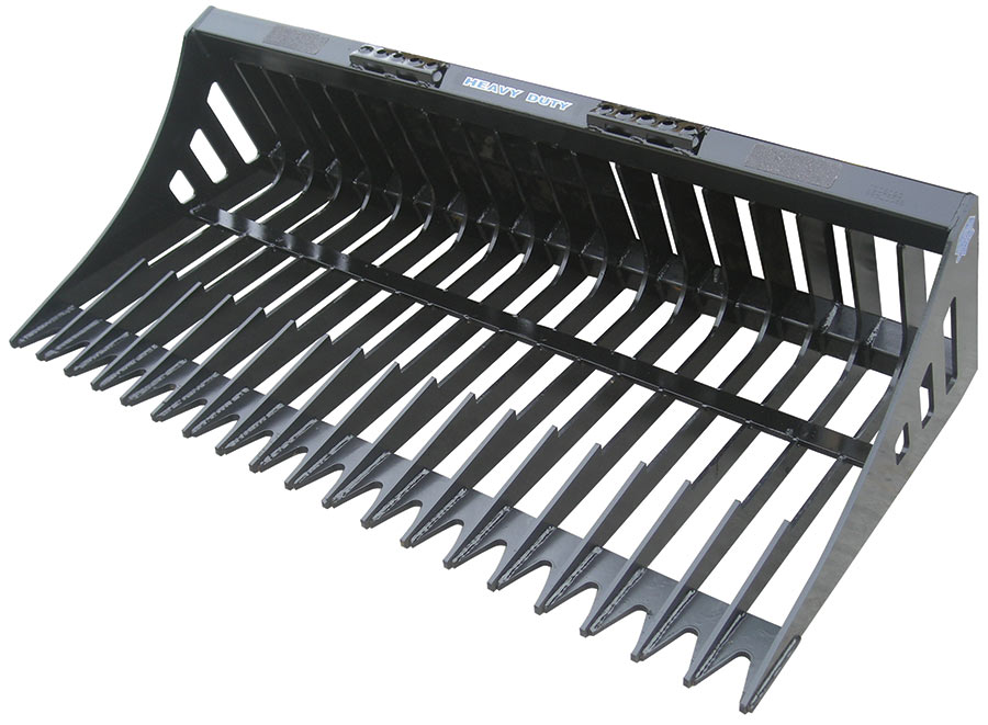 The Skeleton Rock Bucket are built tough to provide you with the strength, durability, and longevity you require out of a rock bucket. Made for the purpose of scooping rocks, construction materials, brush, or any other large particle materials, this bucket makes sorting bigger object easy! Features 3/8" thick tines and sides, dual rod supports, and a fully welded leading edge; this bucket is built tough! Available in 66", 72", 78" and 84" sizes so you can get the right size for the job!