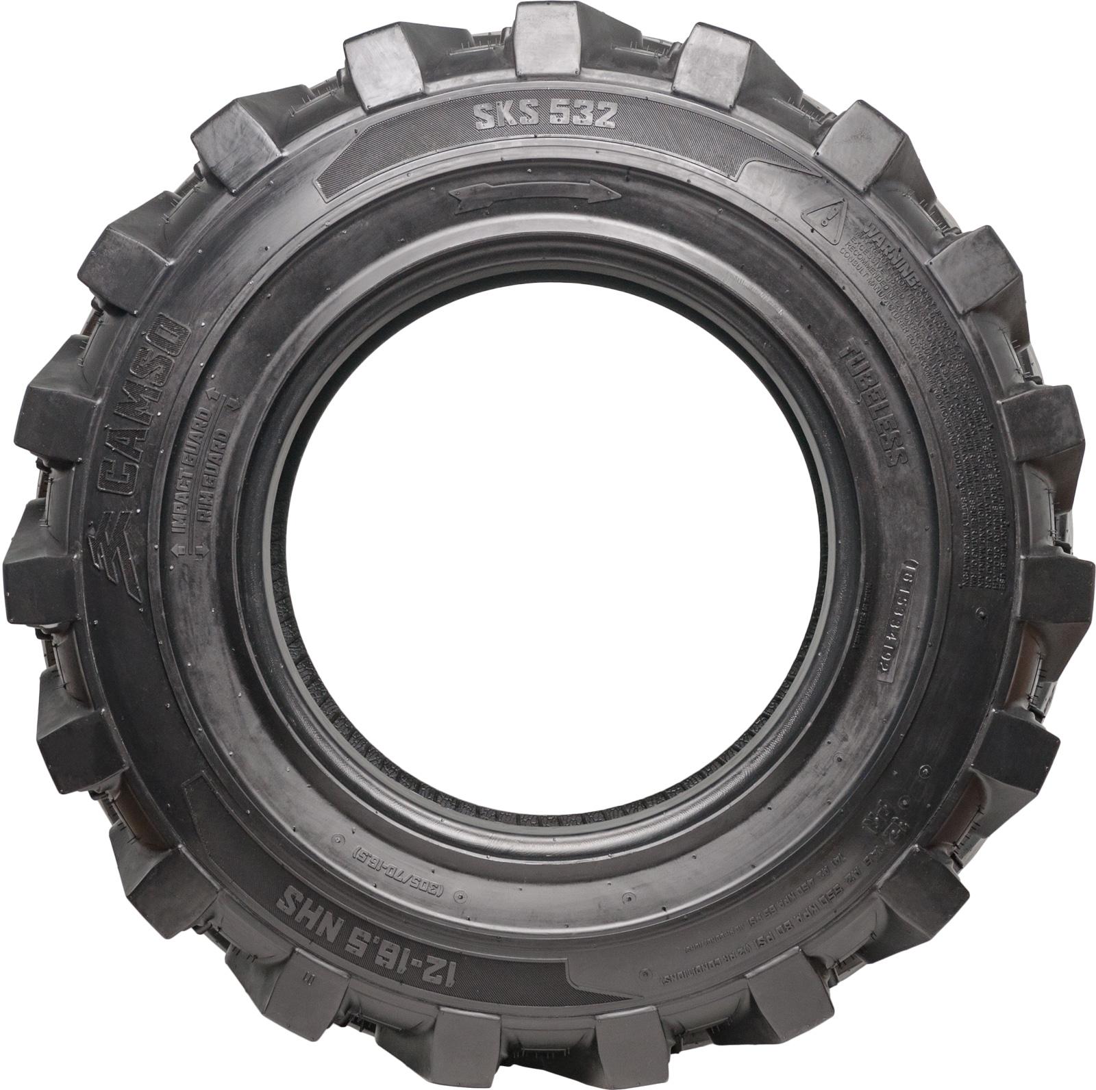 Camso SKS 532 general duty skid steer tire with new impact guard sidewall design. This tire offers excellent traction with extra deep tread depth. These tires work great with applications in dirt and mud.