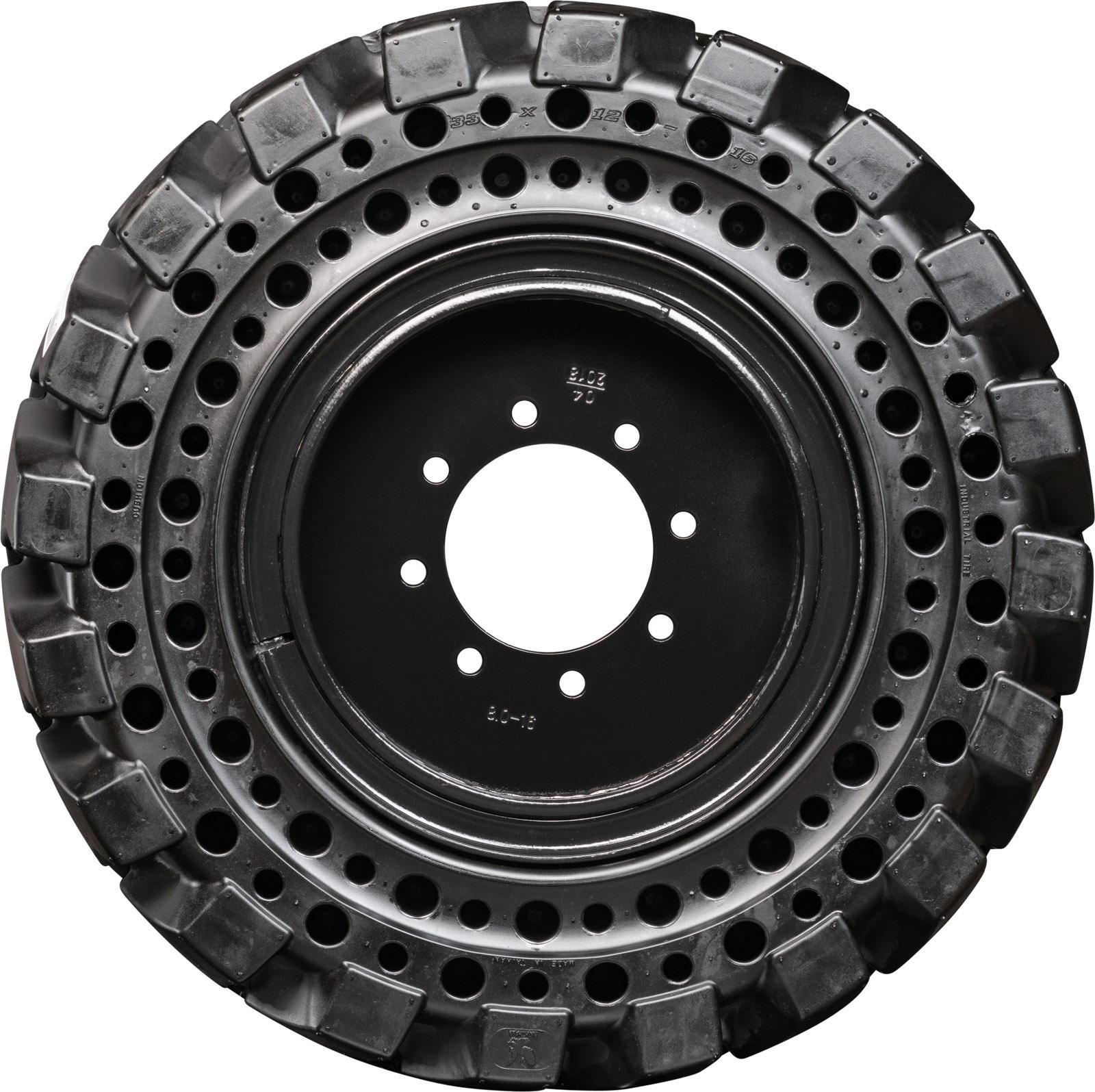 Set of 4 33X12-16 (12-16.5) Traxter Heavy Duty Solid Rubber Skid Steer Tires - 8x10.75 Bolt Rim