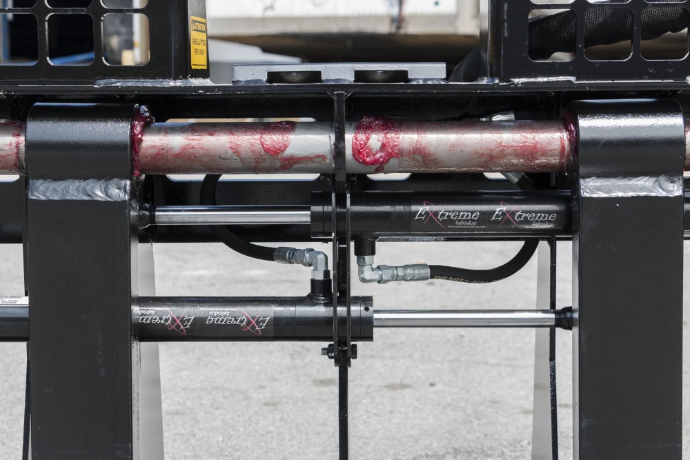 Save time and money by not having to leave your cab to adjust your forks with each load! The hydraulically adjusting forks are engineered with severe duty applications in mind. Rated for 6000 lbs., this attachment is best paired with large frame skid steers and compact wheel loaders.