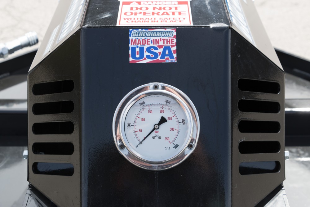 The incredible power and versatility of the Blue Diamond® Severe Duty Series 2 brush cutter will all but remove the need for a mulching head. Its 10” cutting capacity and incredible performance in grass make this brutally tough unit the top in its class. Using the highest quality piston motor on the market, the torque throughout its flow range is unmatched. The visible pressure gauge keeps you aware of the workload and will allow you to work at peak performance, increasing productivity tremendously! Adjustable skid shoes allow the cutting height to be adjusted. The mammoth 1” thick blade carrier weighs over 500 lbs and has a serrated edge to help with mulching and destroying fence wire that so often takes out brush cutters. The innovative debris covers prevent brush and other materials from building up on the top of the deck. Keeping this surface clear of debris ensures maximum life of the durable powder coat as well as adding safety for entering and exiting the machine.
