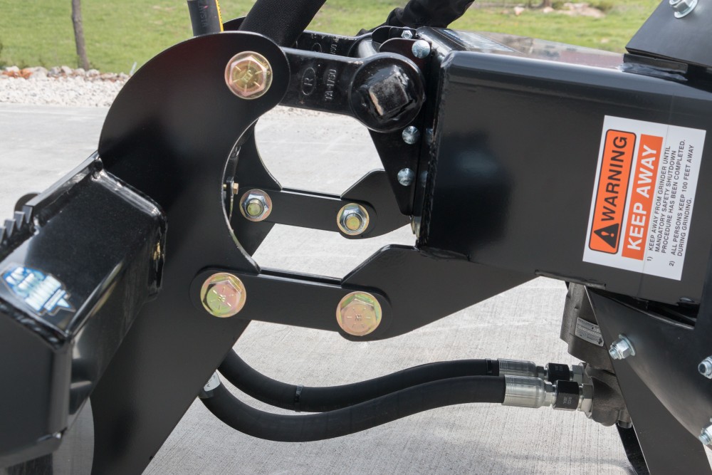 - Very large, high torque radial piston motor with a 97% efficiency rating and keeps its torque right through its rpm range. (most other stump grinder skid steer attachments on the market only have a 79% efficiency)
