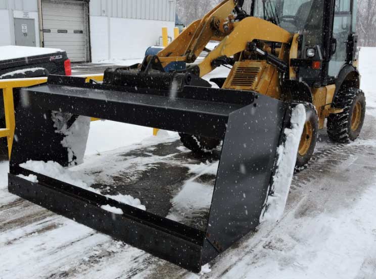 Berlon’s Snow Pusher efficiently moves large volumes of snow swiftly, completing tasks faster than traditional plows or buckets.