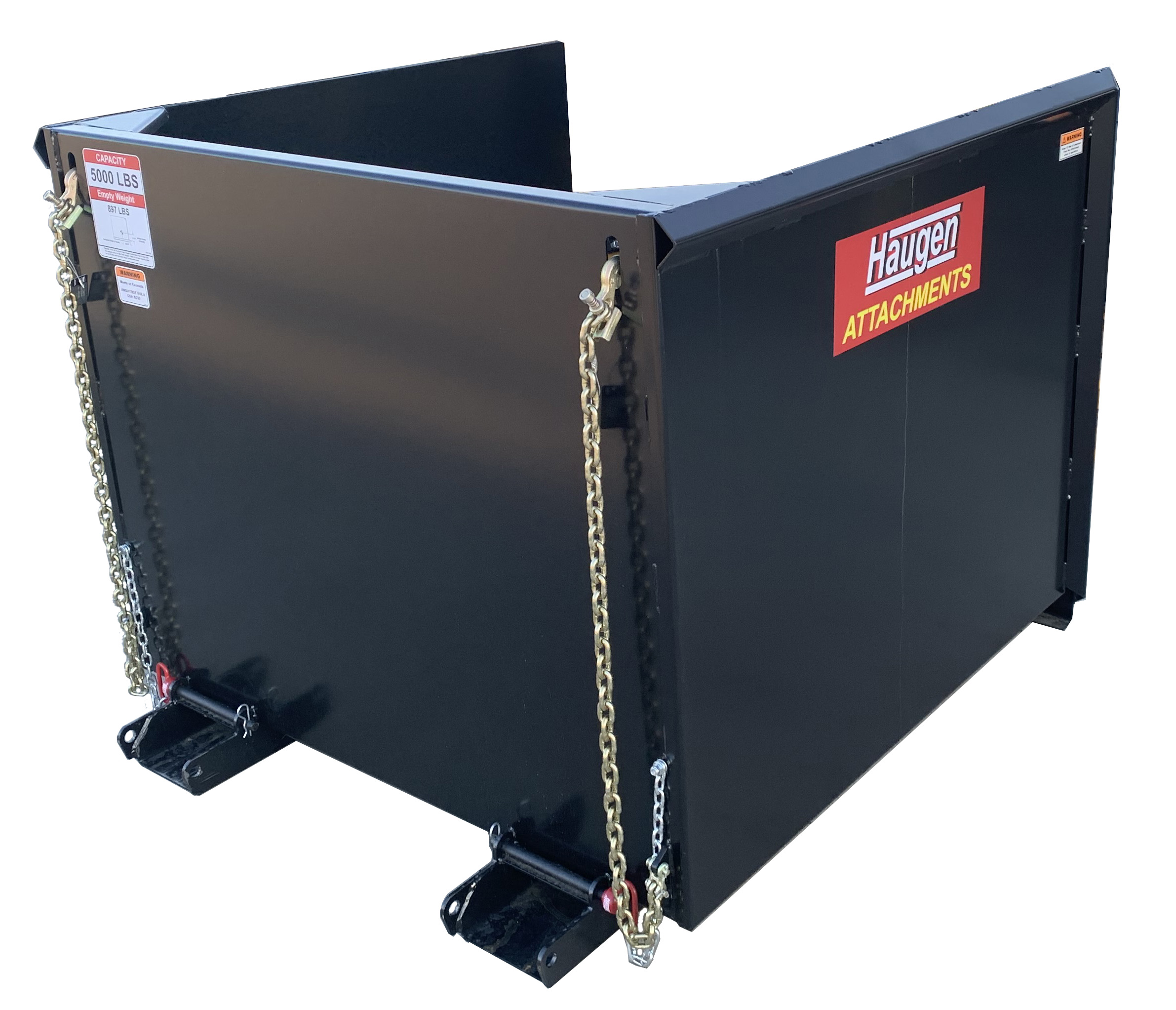 This high capacity hopper slips over the top of your tines. It has a powder coat finish to keep the rust out. The fork pockets are 48" deep. The slots will fit forks up to 2.50" thick x 7.50" wide. This hopper is heavily reinforced with 4" x 8" metal tubing around the floor and heavy gauge angle iron around the top edges of the hopper. Comes in 4 different sizes. See size chart below.